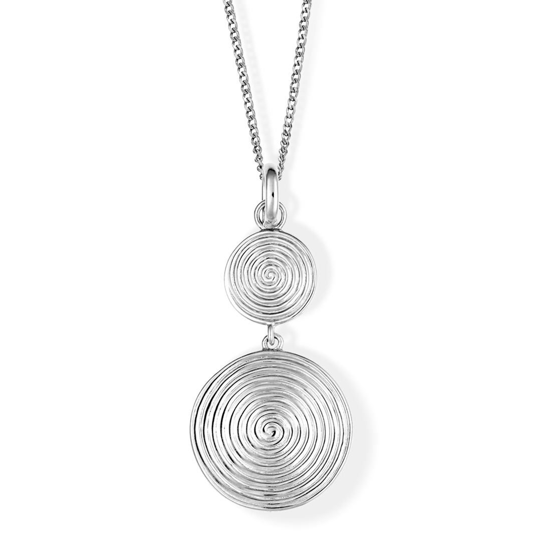 Double Spiral Disc Drop Sterling Silver Pendant