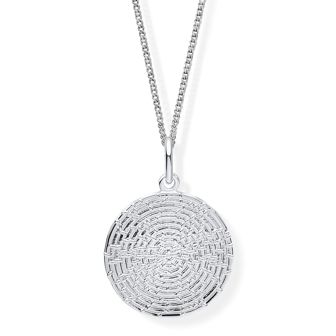 Ripple Texture Round Disc Drop Sterling Silver Pendant
