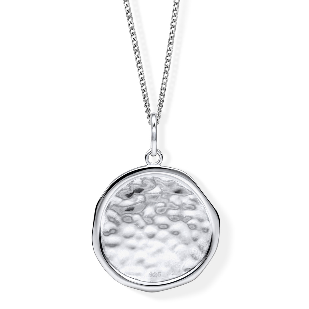 Organic Round Hammered Textured Sterling Silver Pendant