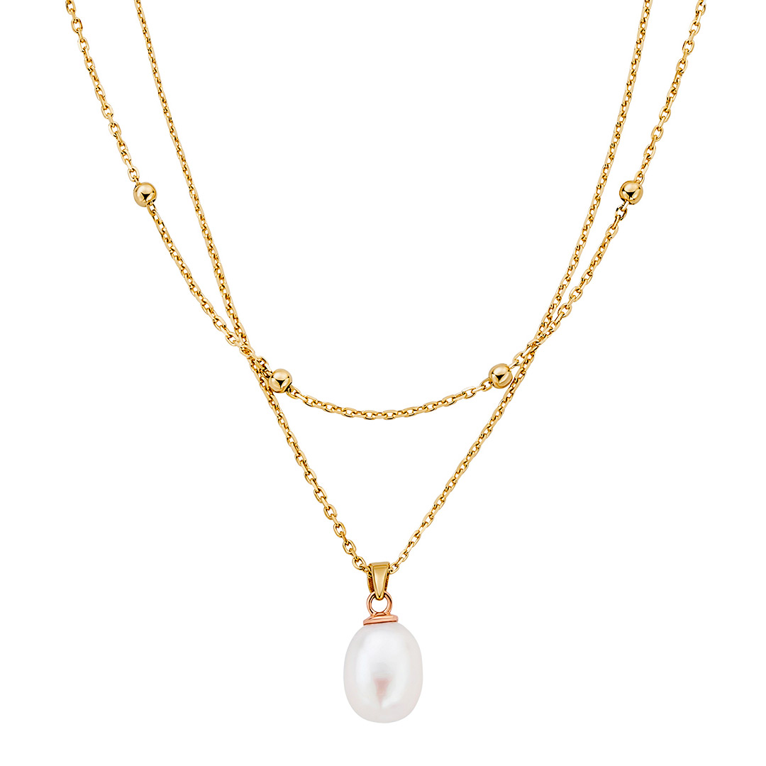 Clogau Nature's Wonder 9ct Solid Gold Pearl Drop Beachcomber Layered Necklace