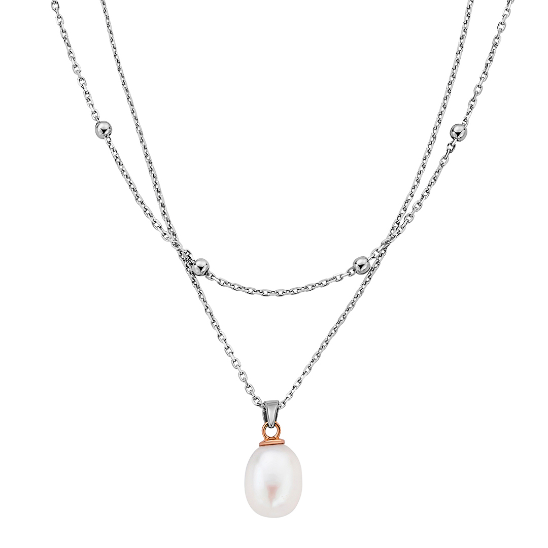 Clogau Nature's Wonder Sterling Silver Pearl Drop Beachcomber Layered Necklace
