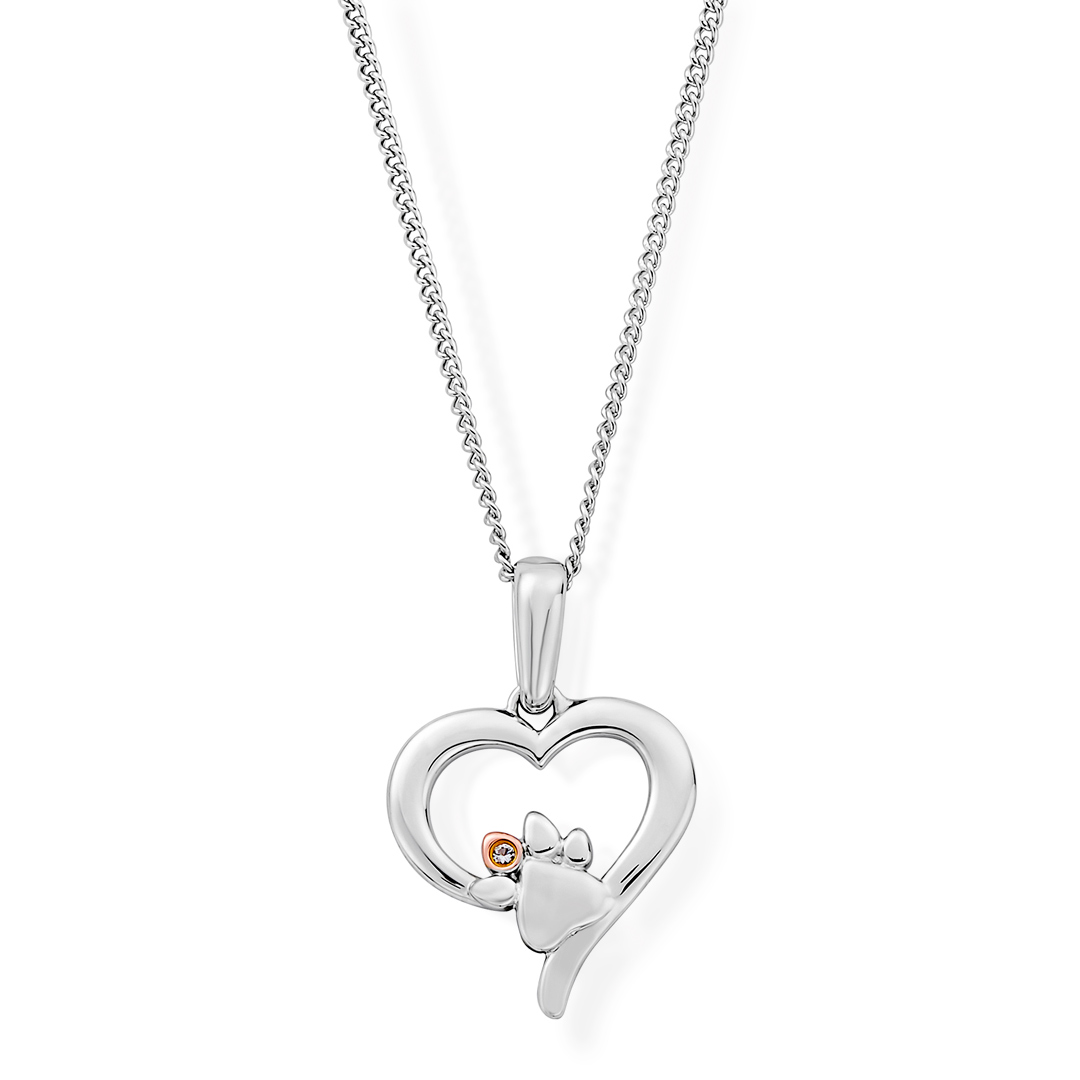 Clogau Paw Prints Sterling Silver Heart Topaz Pendant