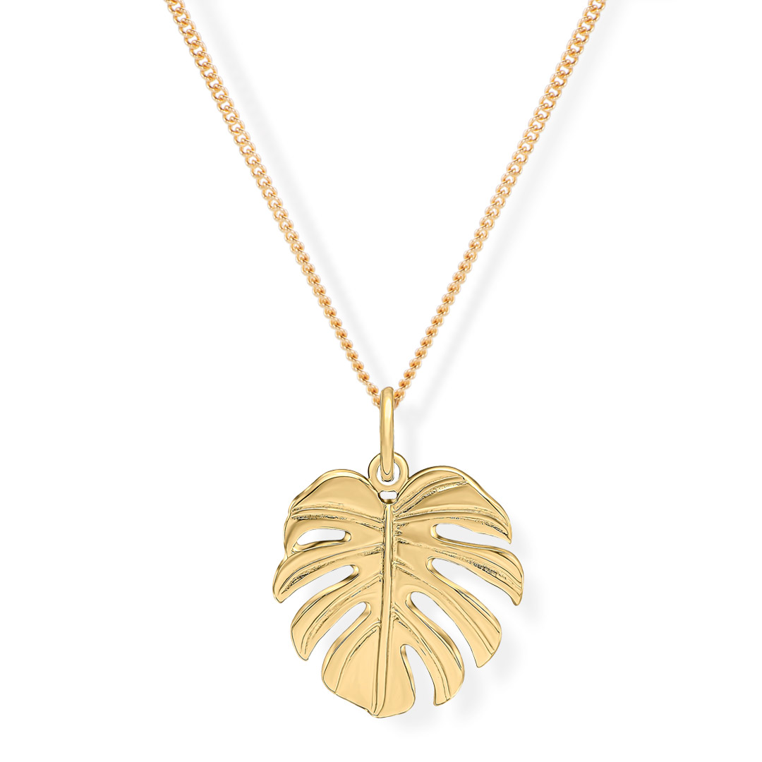 Swiss Cheese Golden Leaf Monstera Muse Sterling Silver Pendant