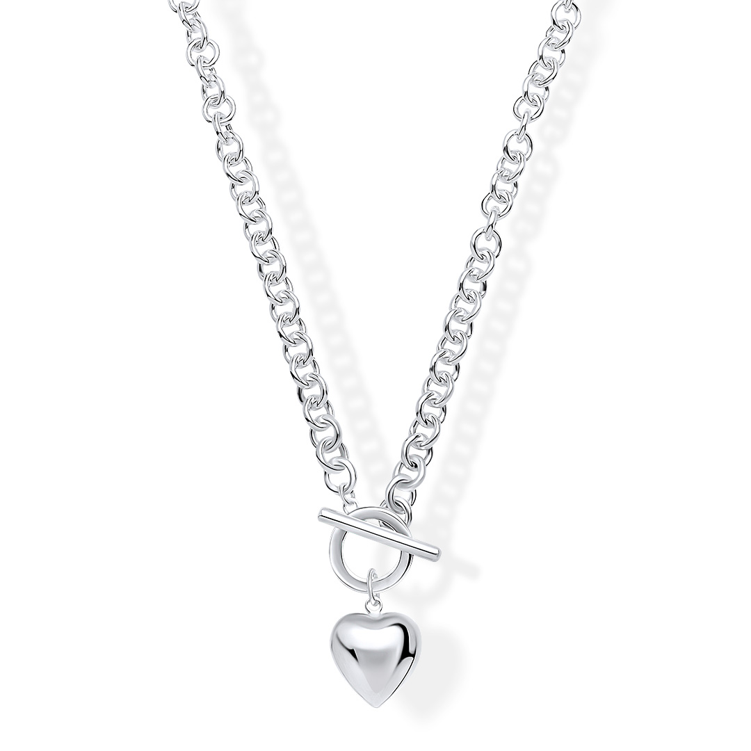 Pebble Heart T-Bar Toggle Sterling Silver Necklace