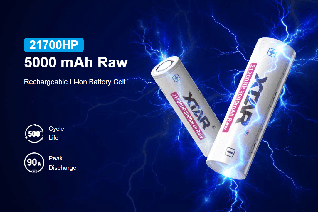XTAR 21700 5000mAh Flat-Top Battery – USB-C Input, Ideal for Flashlights e.t.c
