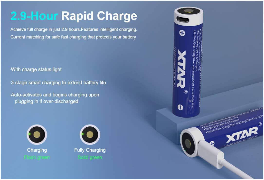 XTAR 18650 3500mAh Battery with USB-C Input – LED Torches & High-Drain...