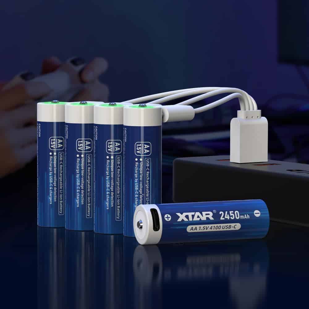 4 Pack XTAR AA Lithium-ion USB-C Battery 1.5V 2A, 4100mWh 2450mAh with...