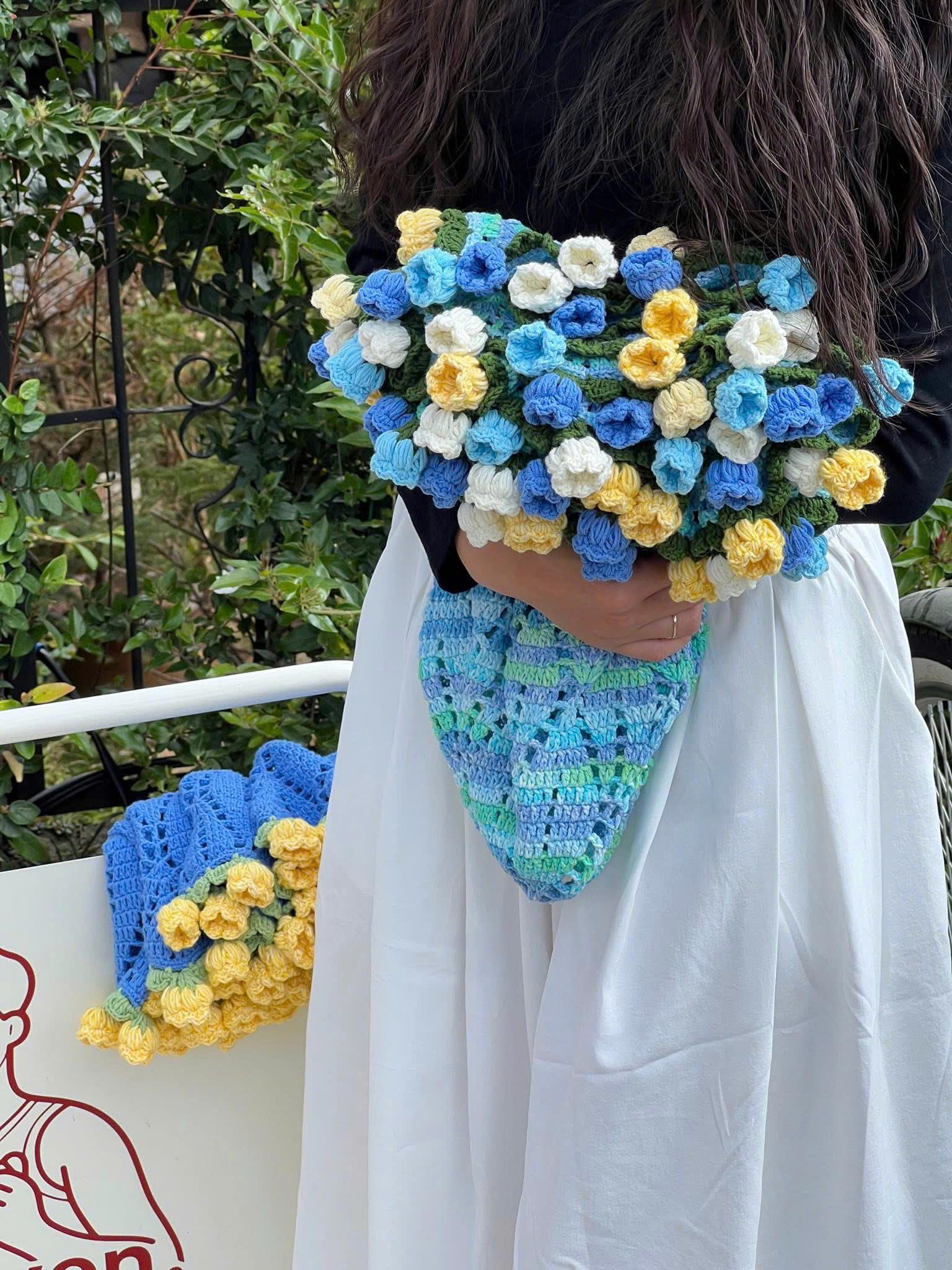 Crochet Flower Bouquet Blanket, Handmade Crochet Rose Bouquet Blanket, Soft Blanket, Mother’s Day Gift, Wedding Gift, Gift For Her, Wife