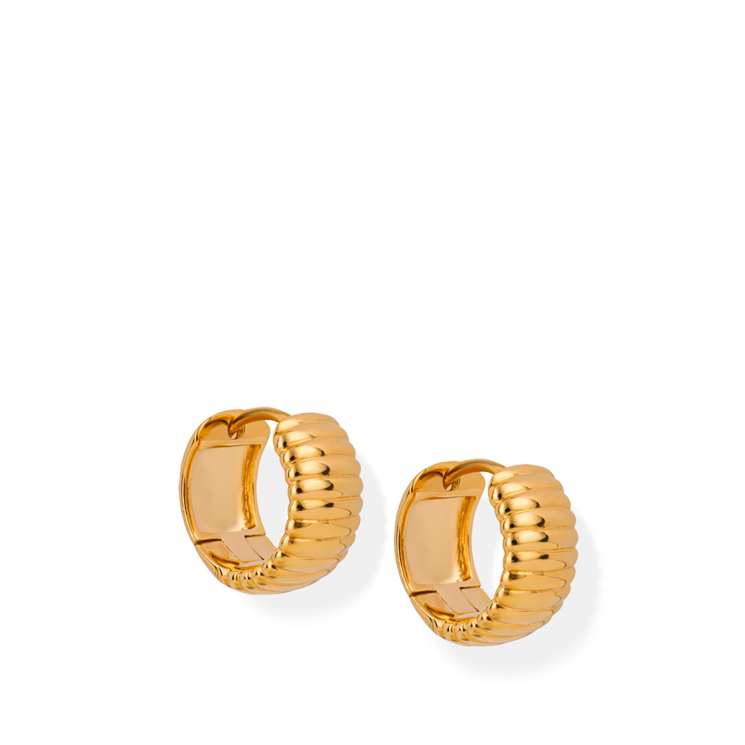 Glowline Golden Fluted Sterling Silver Hoop Earrings